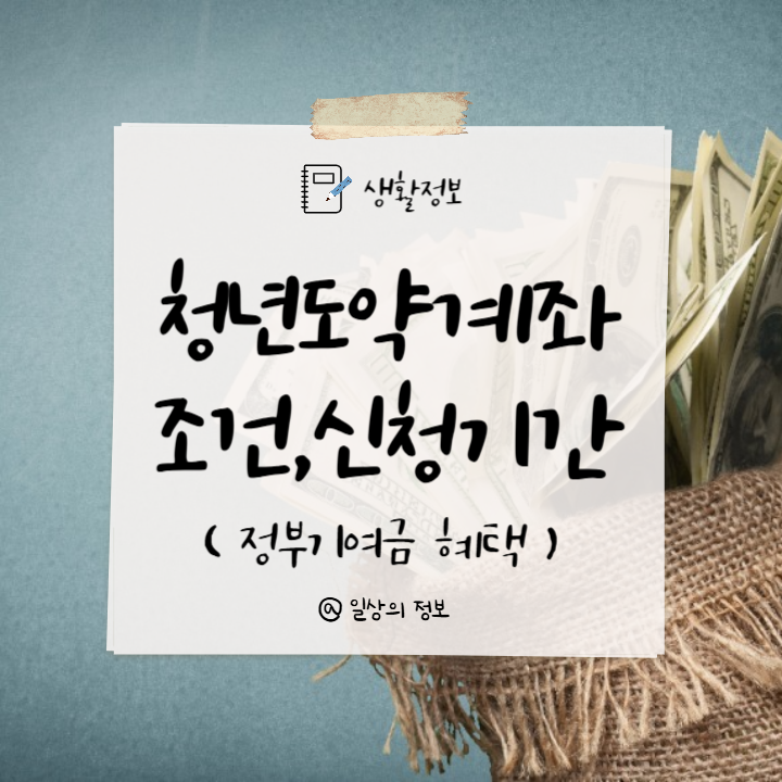 청년도약계좌는 청년들의 자산 형성을 돕기 위해 청년들이 가입한 정기적금에 정부기여금과 금리로 목돈을 만들어 주는 정책입니다. 청년도약계좌 신청할 수 있는 조건은 만 19세 ~ 34세 청년 (1988년생부터 ~ 2004년생)으로 개인소득 7,500만 원 이하, 가구소득 중위 250% 이하이며 신청기간 내에 취급은행으로 신청하고 심사가 끝나면 계좌를 개설할 수 있게 됩니다.