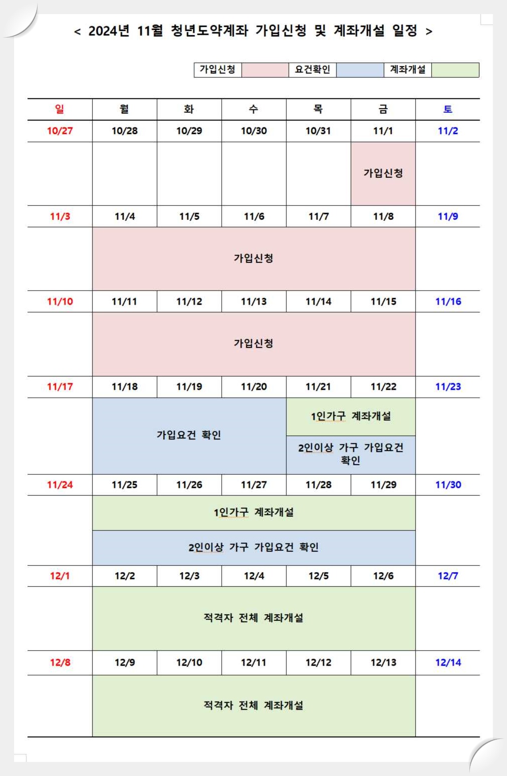 ⦁ 계좌개설: 심사 시작 3일 후 1인가구부터 계좌계설시작~ 다음 달 15일 전까지 계좌 개설완료