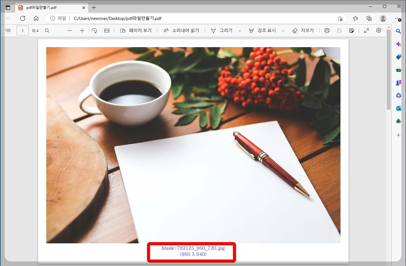 ⑥ 완성된 PDF 파일을 클릭하여 이미지들이 PDF파일에 잘 들어 갔는지 꼭 확인해야 합니다.